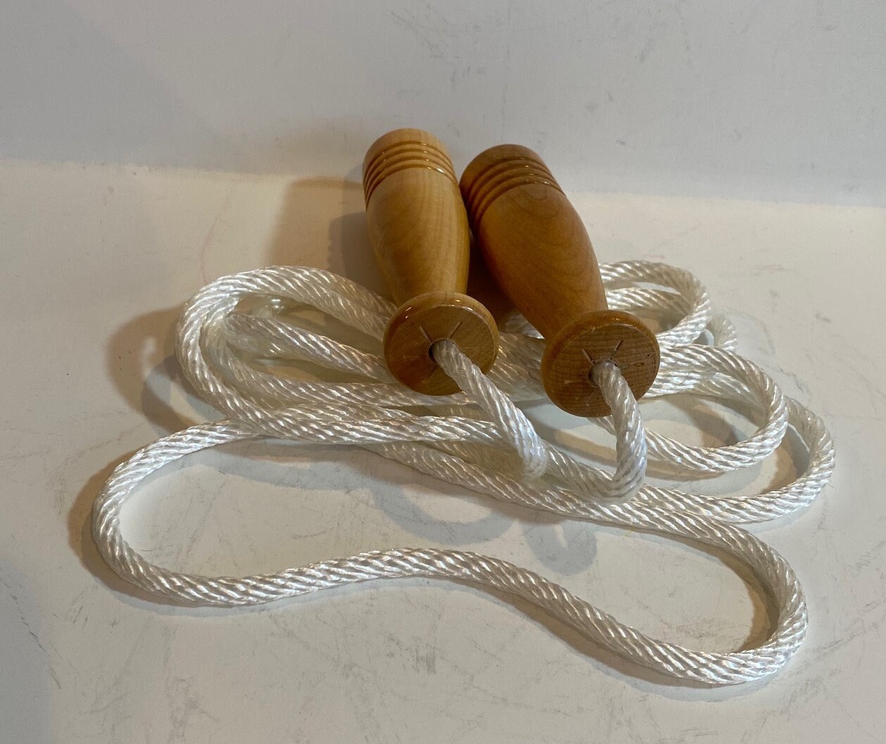 Jump rope designed for both children and adults. Handles are approximately 4″ long, and the rope length is selected based on the user’s height. Includes a product card with the rope’s history. Not for children under 3. Wooden handles are not sold separately.